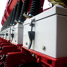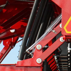 Suspensión independiente en cada rueda. La suspensión de la “MONUMENTAL” es un diseño exclusivo patentado por A-D. Esta permite un andar sereno y estable durante en transporte. Pero su principal virtud reside en la absorción de impactos producidos por cuevas de peludos, pozos, grietas y otros accidentes del terreno. Esto no solo asegura una mejor y constante calidad de siembra, sino que preserva al conjunto de máquinas de mayores daños.