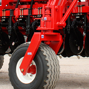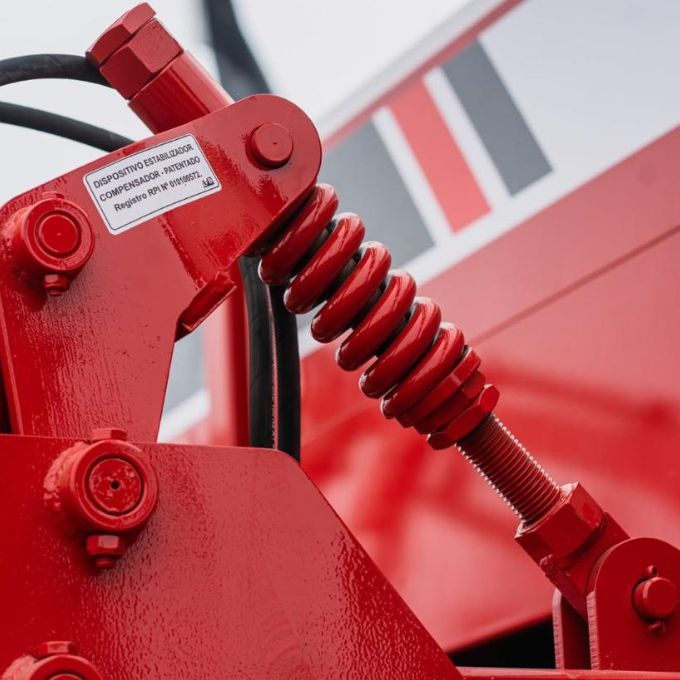 Suspensión independiente en cada rueda. La suspensión de la “MONUMENTAL” es un diseño exclusivo patentado por A-D. Esta permite un andar sereno y estable durante el transporte. Pero su principal virtud reside en la absorción de impactos producidos por cuevas de peludos, pozos, grietas y otros accidentes del terreno. Esto no solo asegura una mejor y constante calidad de siembra, sino que preserva al conjunto de máquinas de mayores daños.